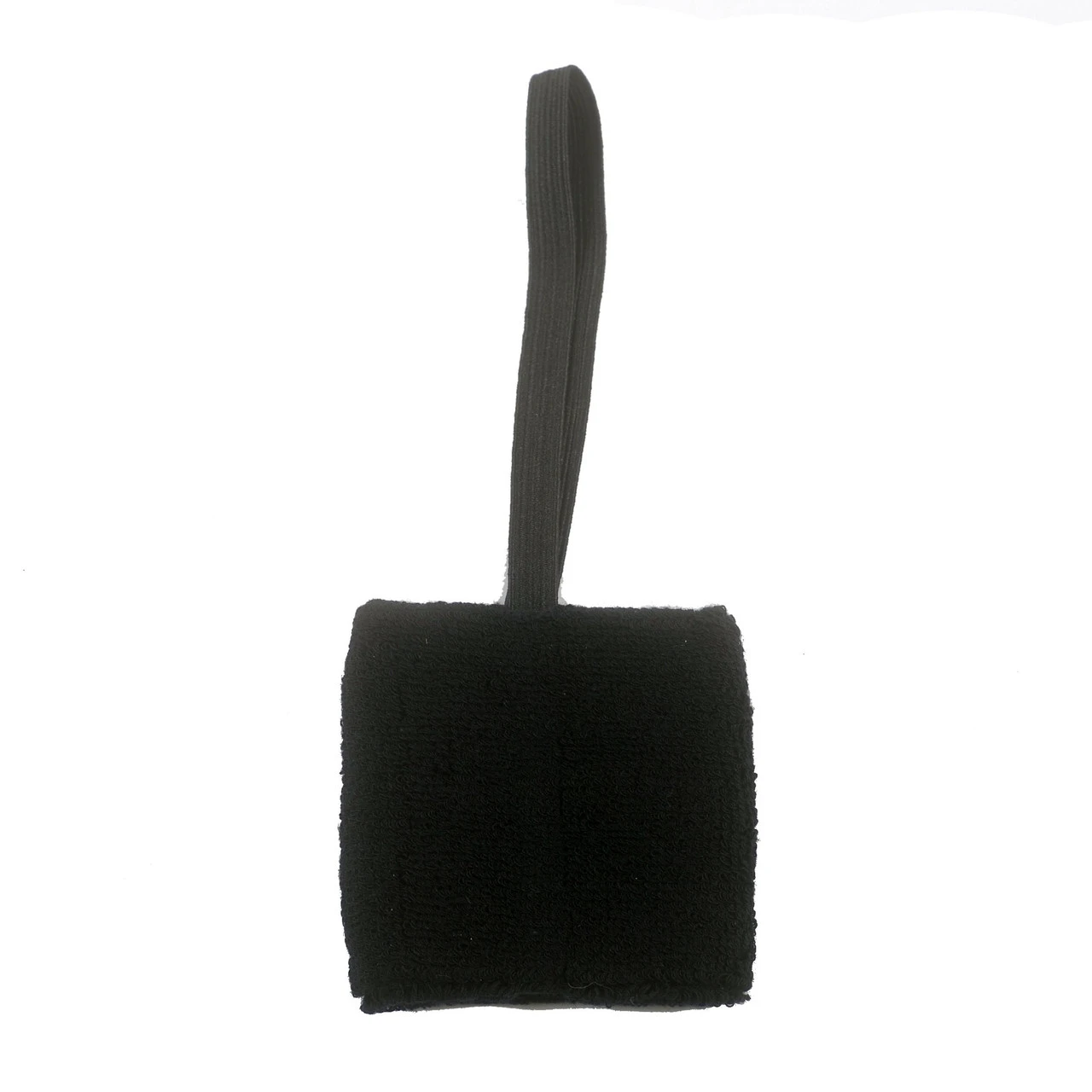 Terry cloth 3″ wristband with elastic down indicator strap attached. Helps absorb moisture to keep hands drier. Solid black.