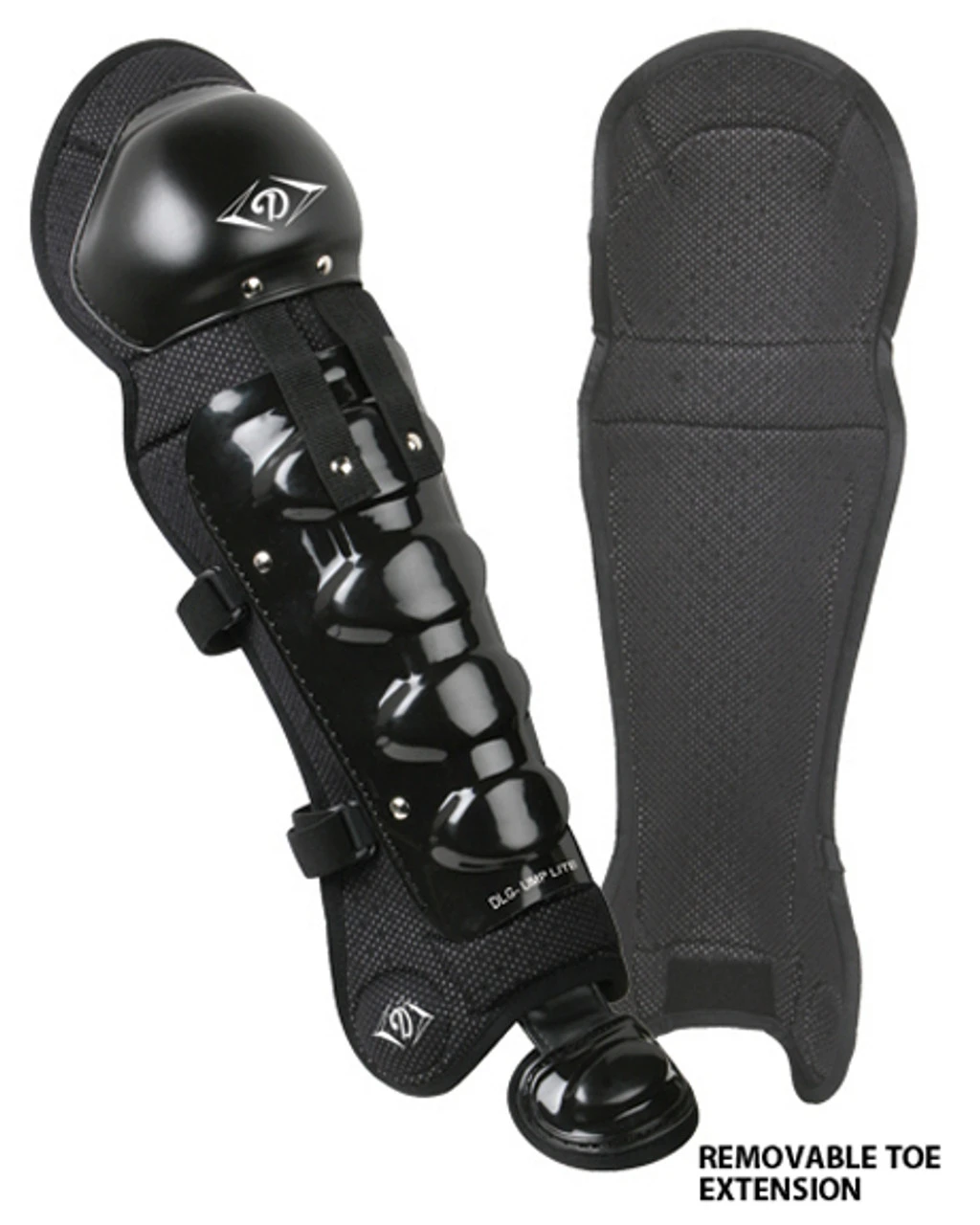 Diamond Ump Lite Leg Guards – Diamond “Ump Lite” shin guards are made of quality materials and offer standard protection at a value price. Extremely lightweight plastic that is almost two pounds lighter than many other brands. The low profile design feels almost like your not wearing shin guards at all. Durable snap-lock Tifco buckles. Removable toe extension.