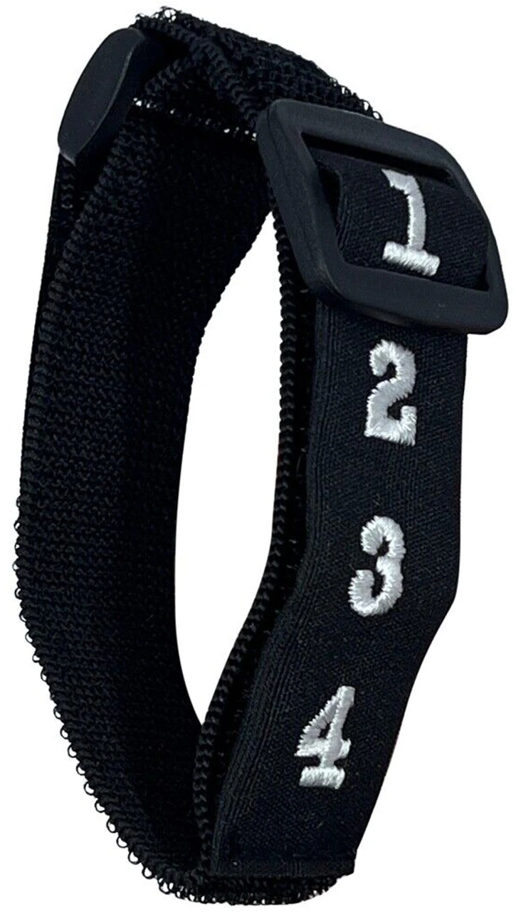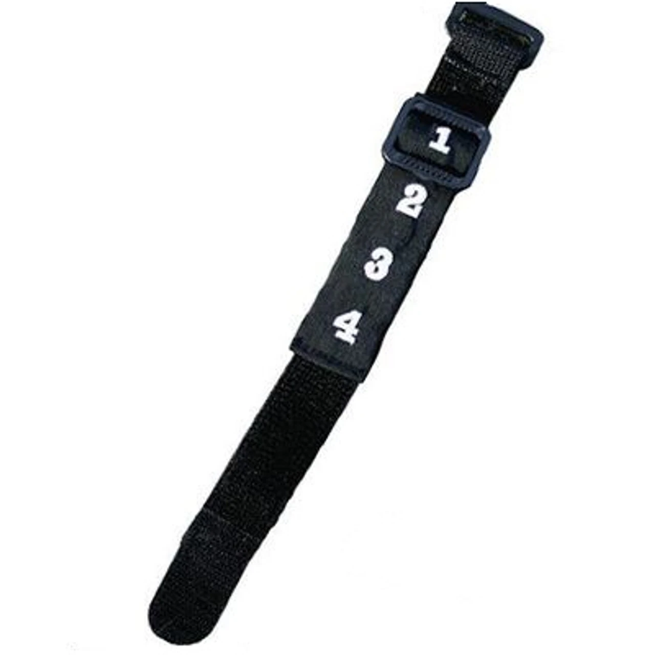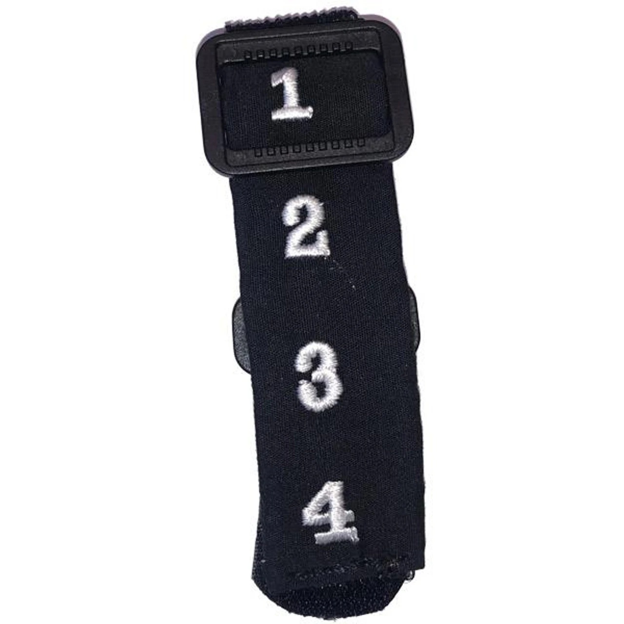 Plastic slider to keep track of the down. Large white embroidered numbers. Hook and loop velcro closure for size adjustment. Great tool when you must wear your gloves. A great football referee accessory.
