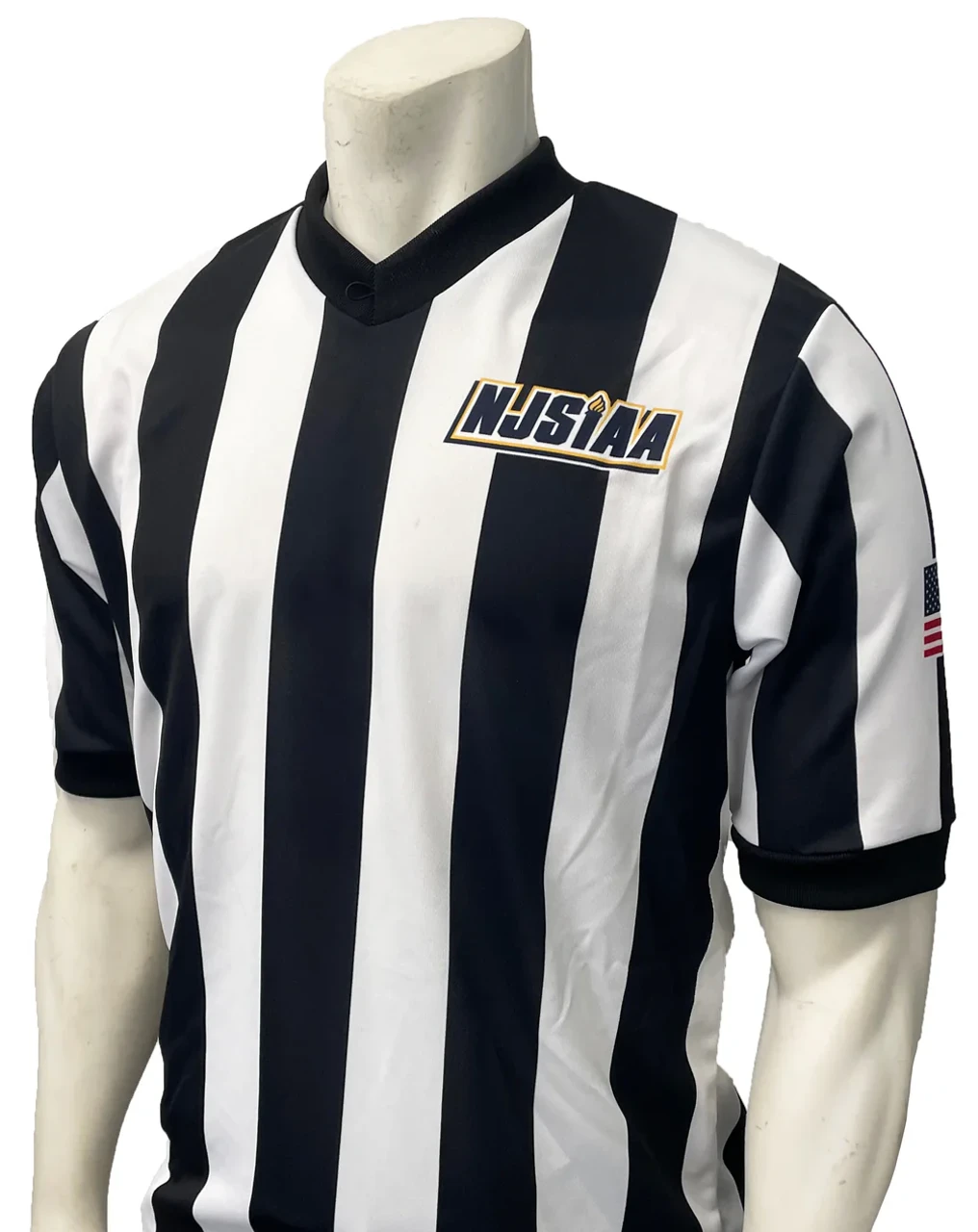 Featuring a whitw-bordered USA flag on the left sleeve and theNew Jersey NJSIAA logo on the left chest. IAABO logo on the right sleeve. This shirt is 100% made in the USA, reflecting exceptional quality and craftsmanship. A built-in Smitty lanyard ring ensures your essentials are always within reach, combining practicality with sleek design. Whether you’re on the court or under the spotlight, this Smitty Basketball Referee Shirt offers unparalleled durability, comfort, and style—making it the ultimate choice for officials who demand the best in performance and appearance.