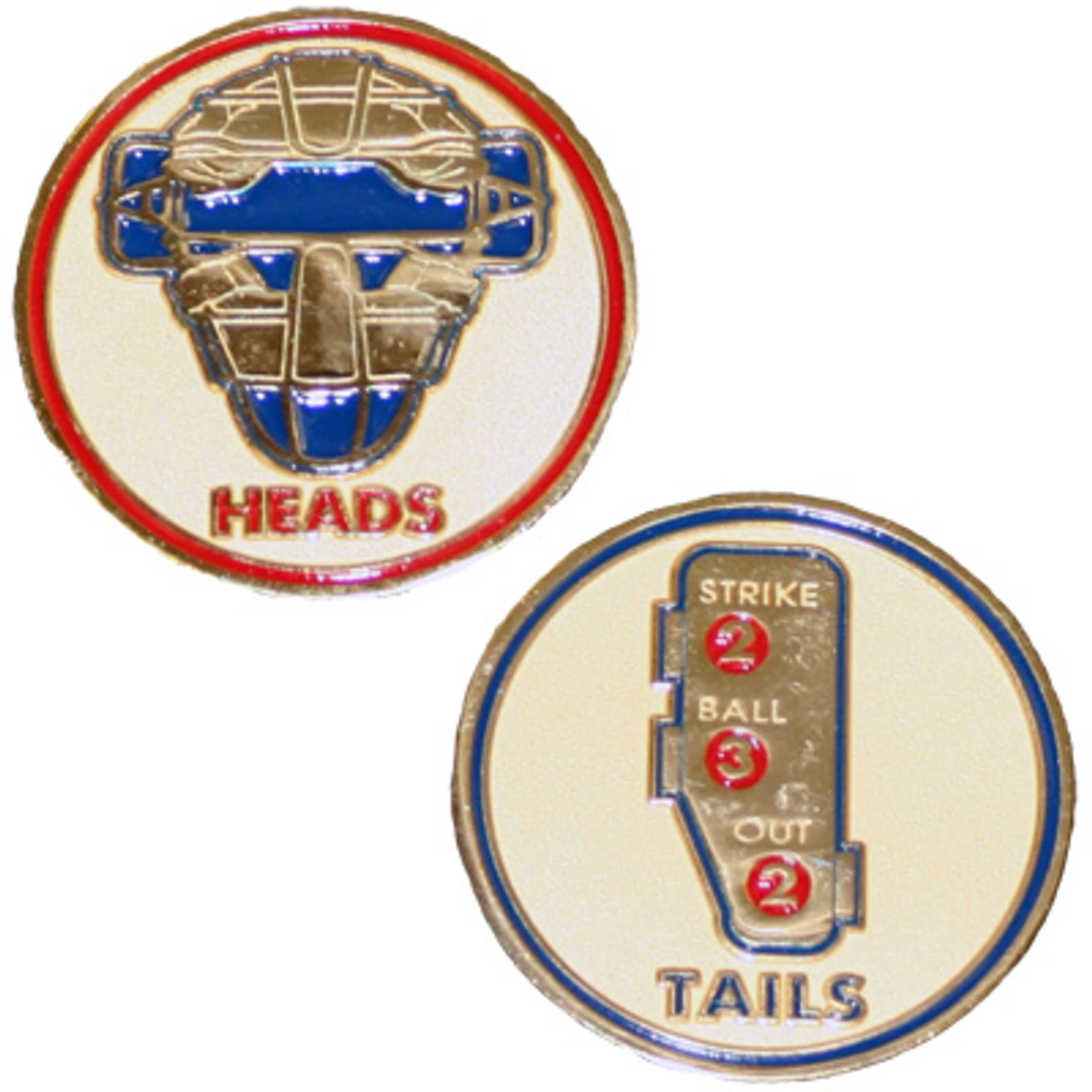 Mask and Indicator umpire flipping coin. Plastic storage case included.