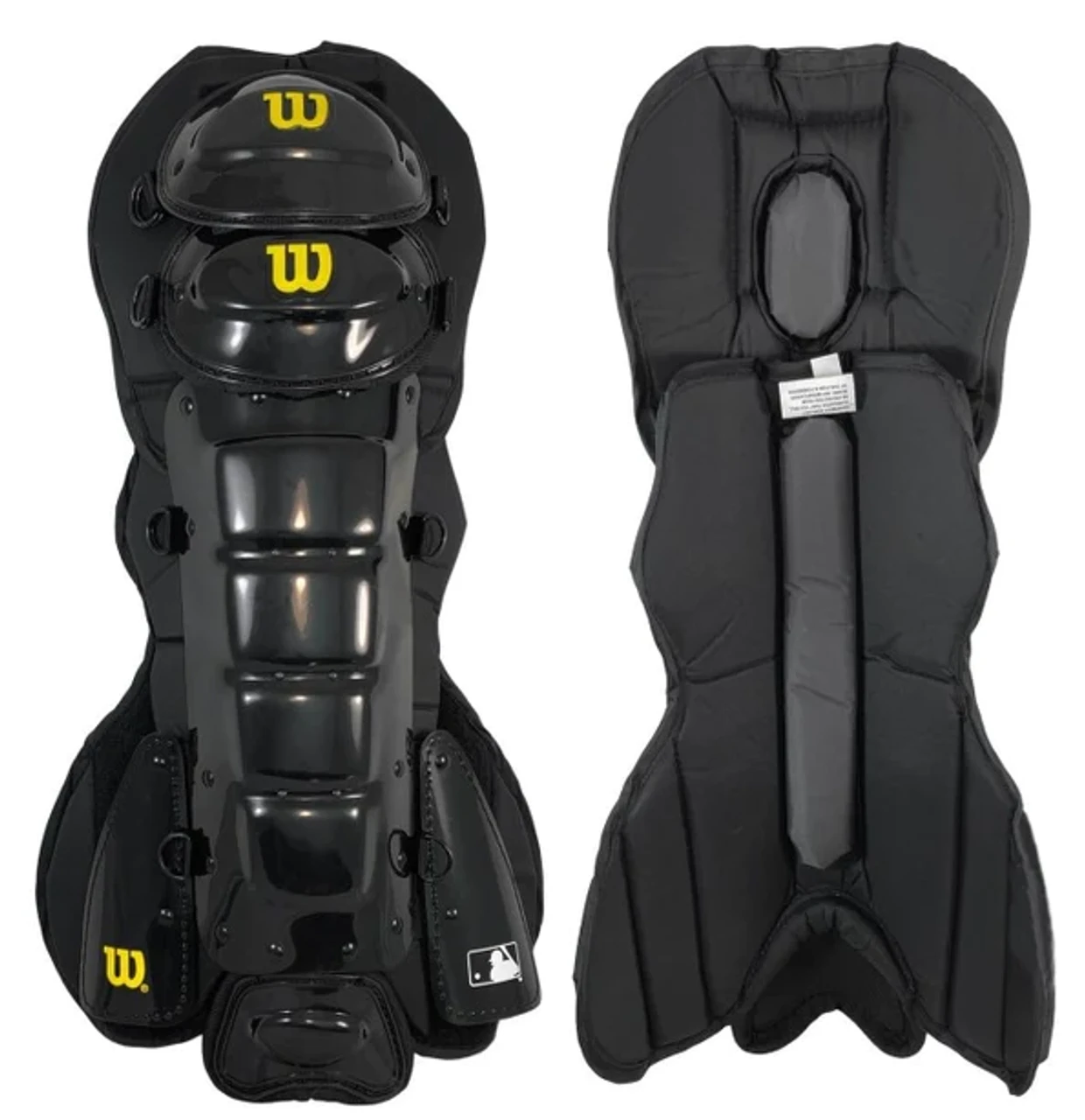 The Wilson Pro Gold 2 Umpire Leg Guards feature Wilson’s Hybrid Padding System utilizing air management foam with a memory foam center channel.
